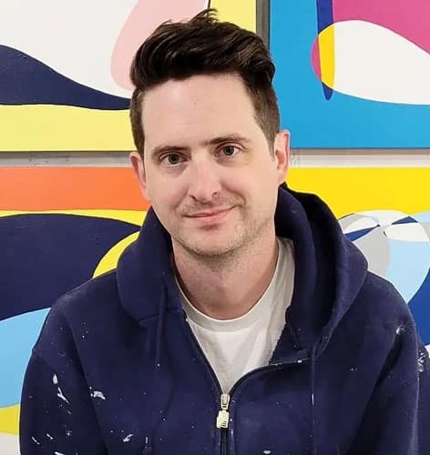 He relocated to Seattle in 2014, where he now creates bright, expressive abstract paintings full of color, movement, and layered texture.